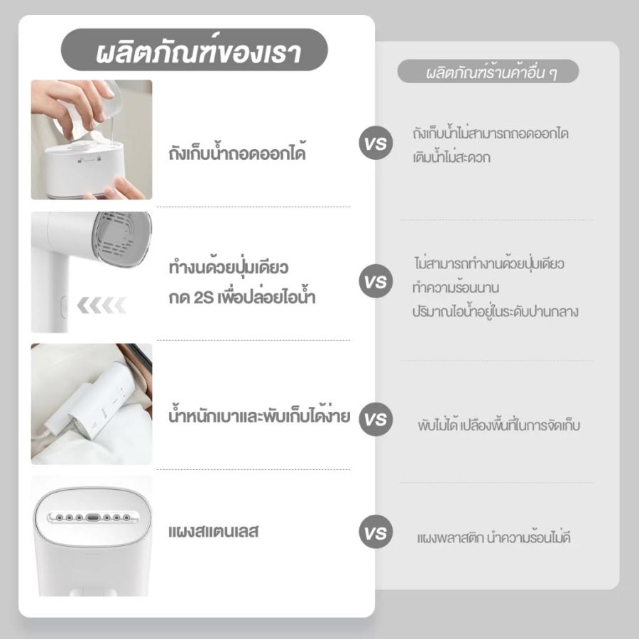 ถังเก็บน้ำ 170 มล. , เติมน้ำครั้งเดียวสามารถรีดเสื้อแขนสั้นได้ 8 ชิ้น