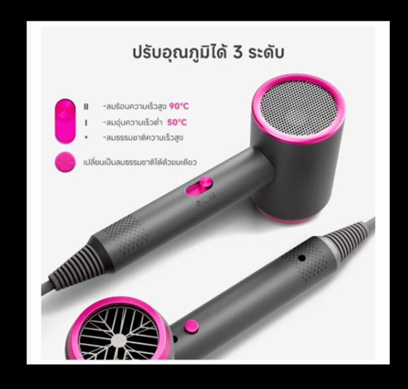ไม่ขึ้นอยู่กับความร้อนในการอบแห้ง , ลมแรง ผมแห้งเร็วและถนอมเส้นผมมากขึ้น