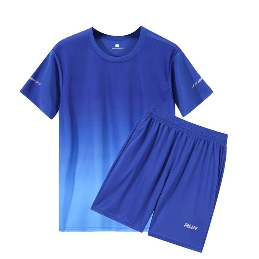 ชุดกีฬาสีน้ำเงิน กางเกงขาสั้น+ชุดกีฬาแขนสั้น