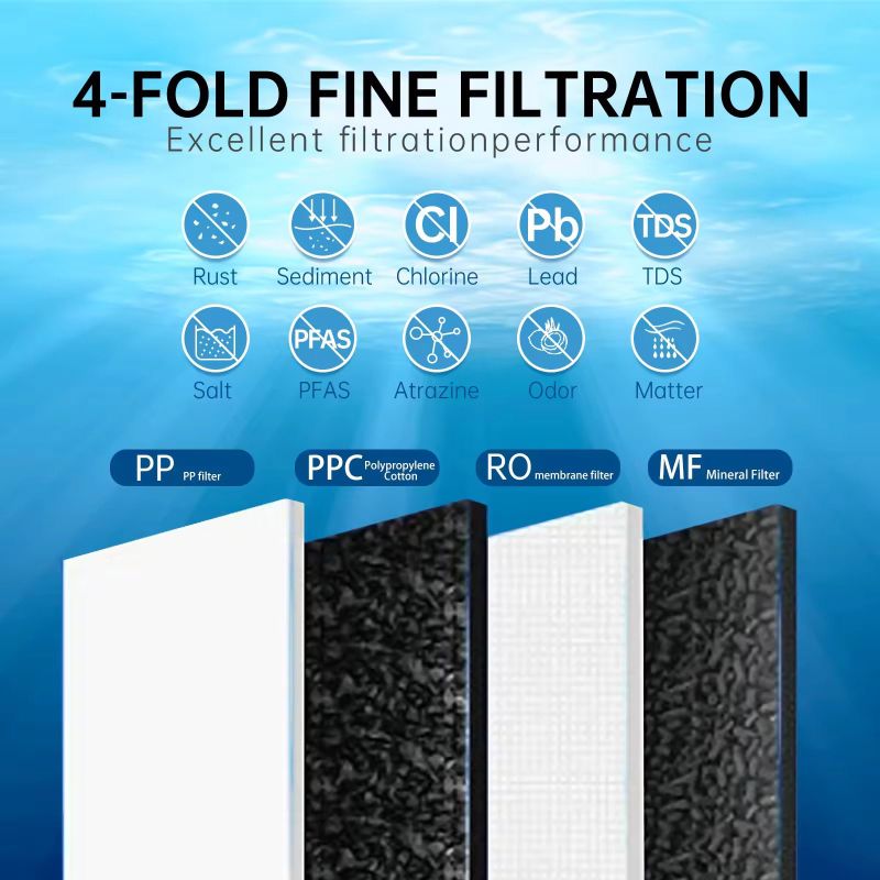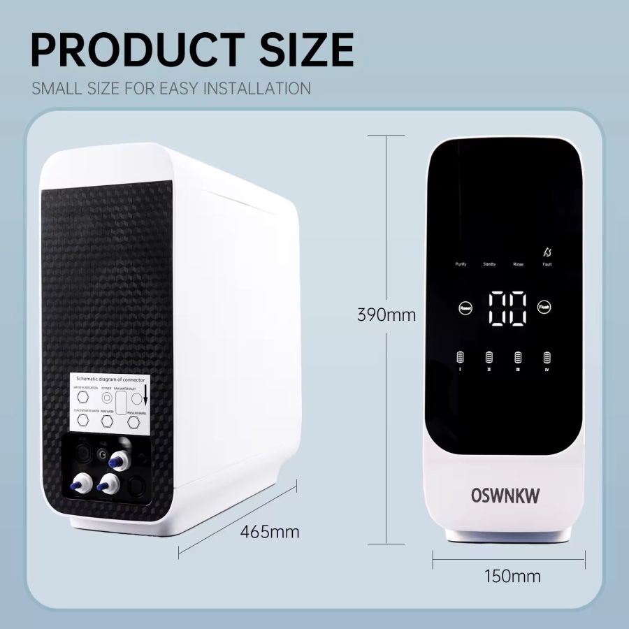 เครื่องจ่ายน้ำแบบออสโมซิสย้อนกลับ - อัตราการไหลสูง 600GPD ไม่ต้องใช้ถัง TDS ขนาดกะทัดรัด อัตราการระบายน้ำ 1:2 น้ำแร่อัลคาไลน์